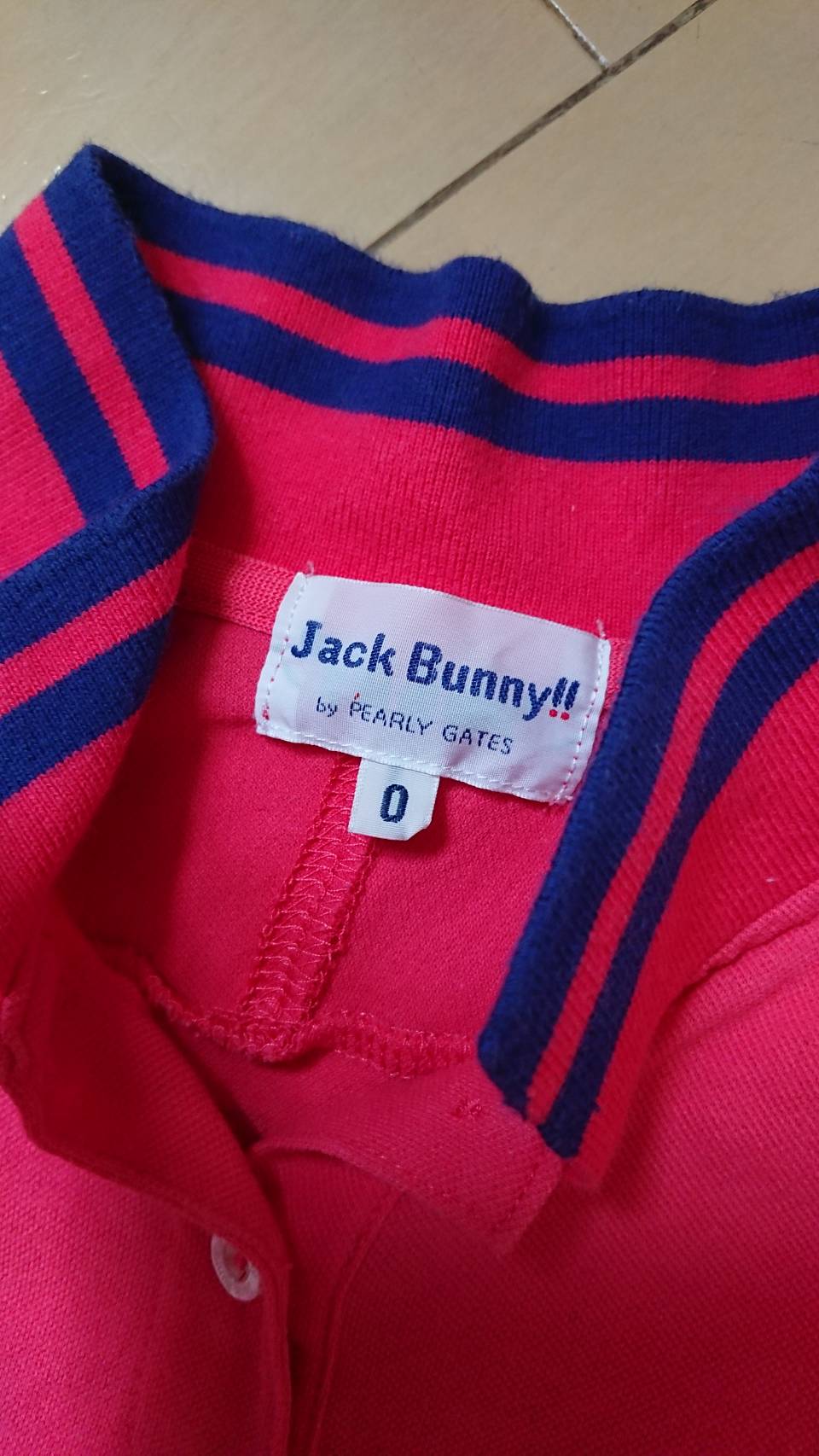 襟のついたシャツがなく、普通のこども服ではなかなかポロシャツって売っていないんです。なので、近くのららぽーとに入っているジャックバニー(正規店)で購入しました。でも、先ほども書きましたが、コハはちょっとぽっちゃり体型なので、ジュニアサイズではパツパツ。仕方なく、レディースの0(XSかな?)を購入しました。